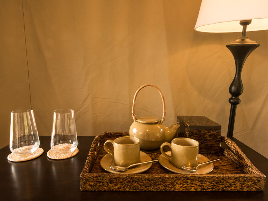 Wake to treetop light filtering through khaki canvas - the Deluxe Tent feels intimate yet surprisingly airy.